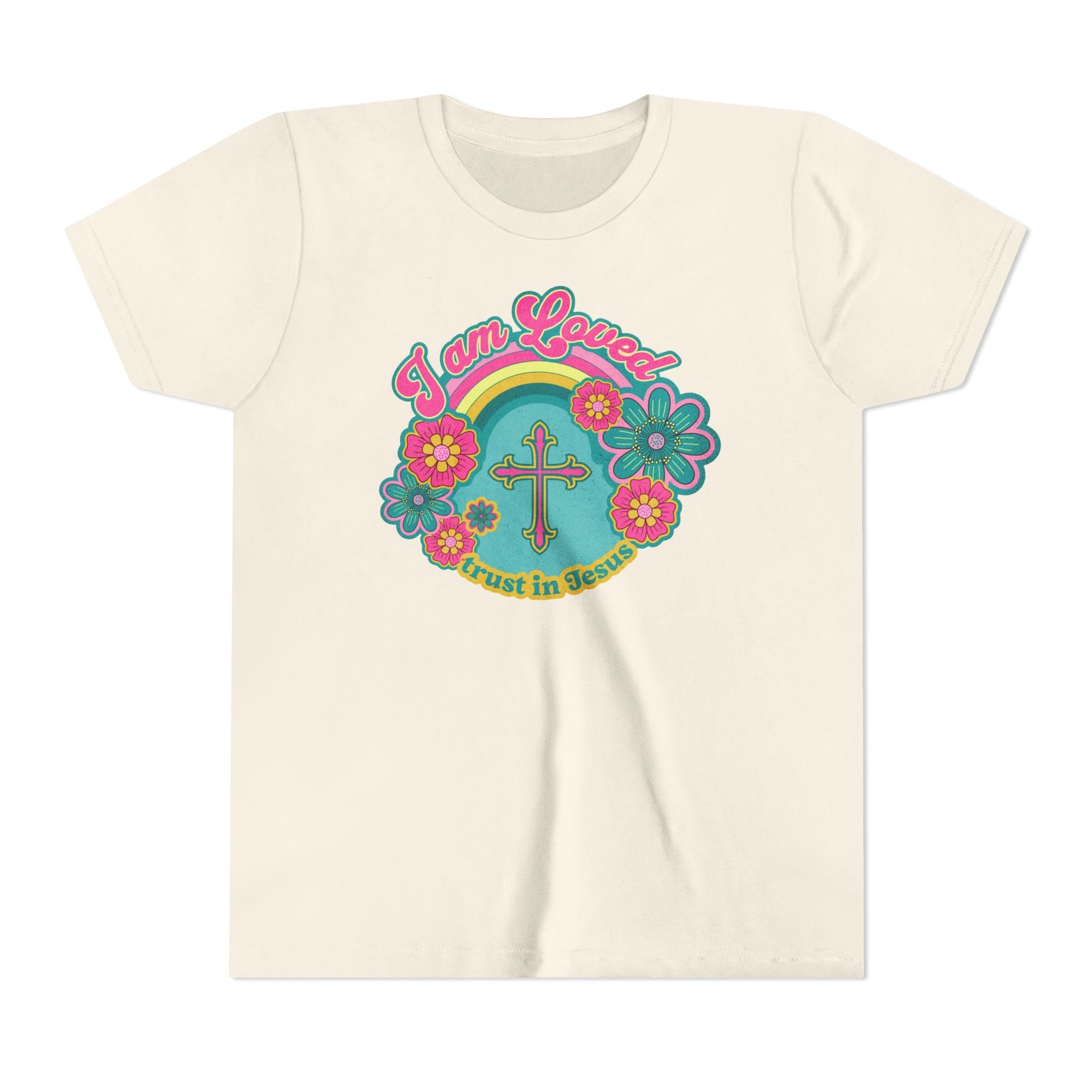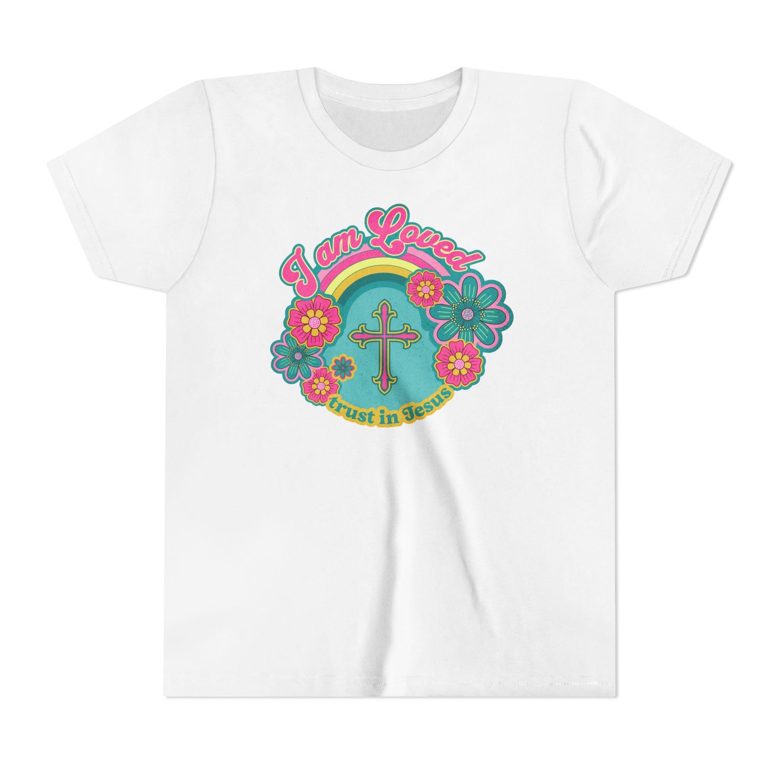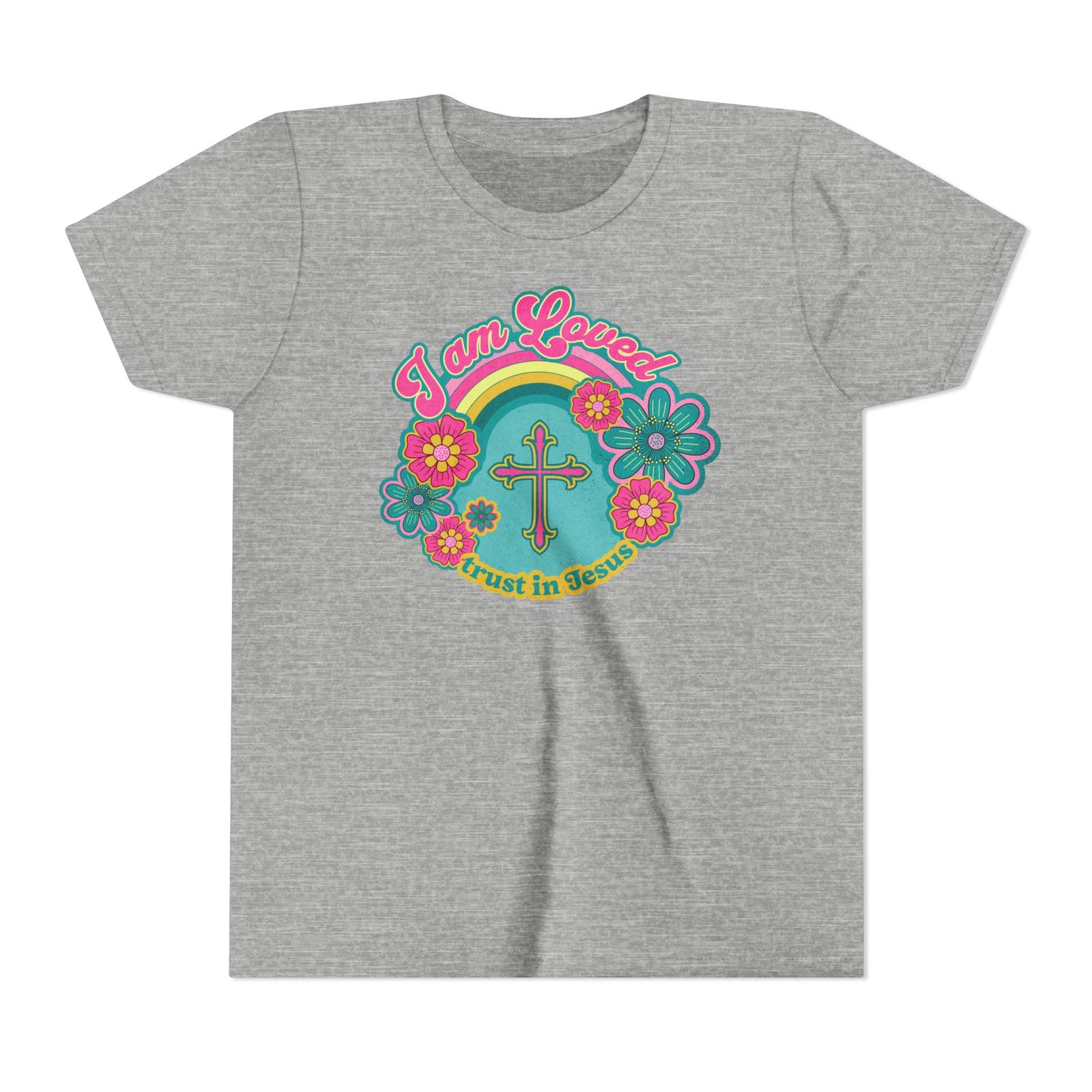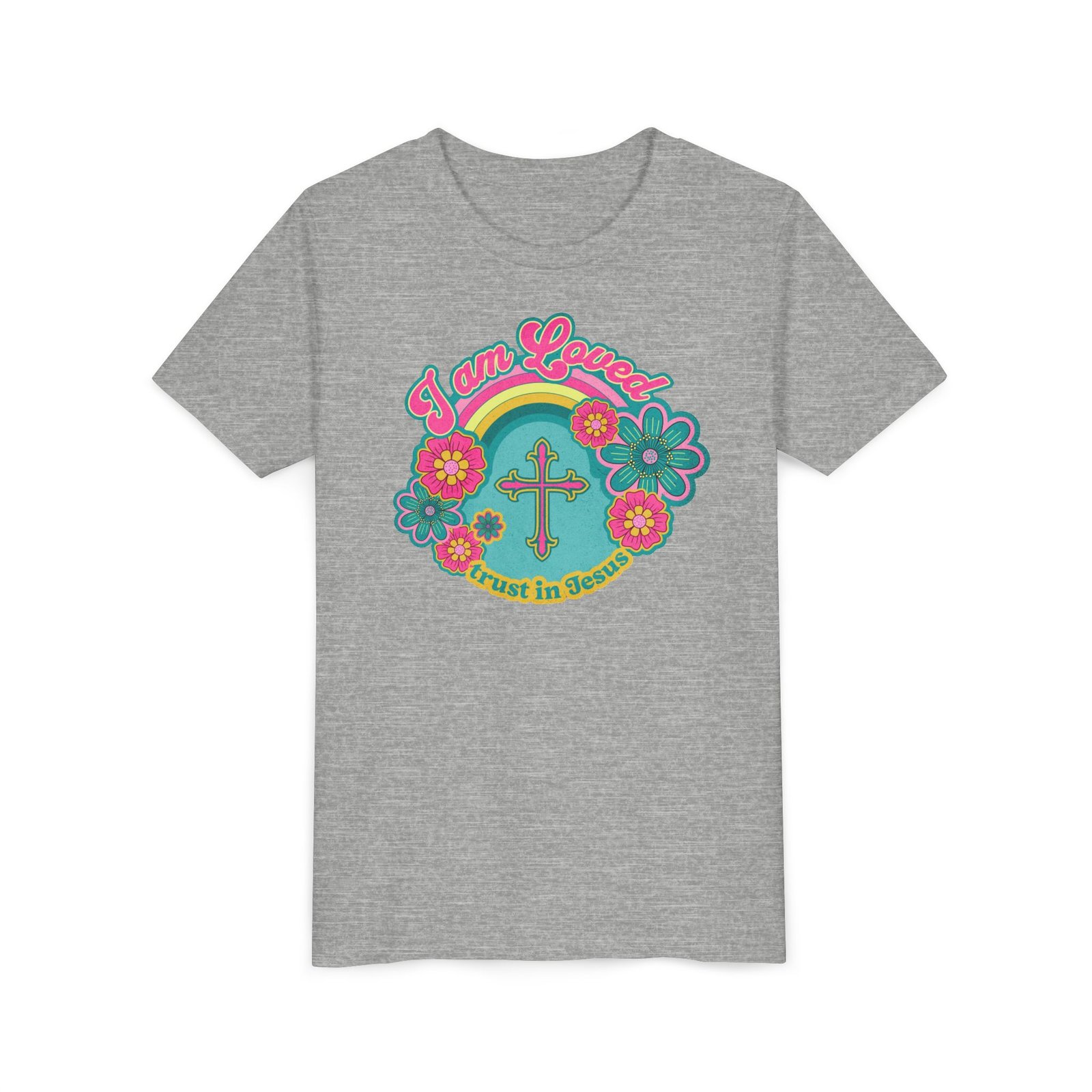 Christian Shirt for Kids , Boho Flowers shirt, I am loved Youth Tee, Religious Youth, homeschooler gift, youth girl rainbow t shirt