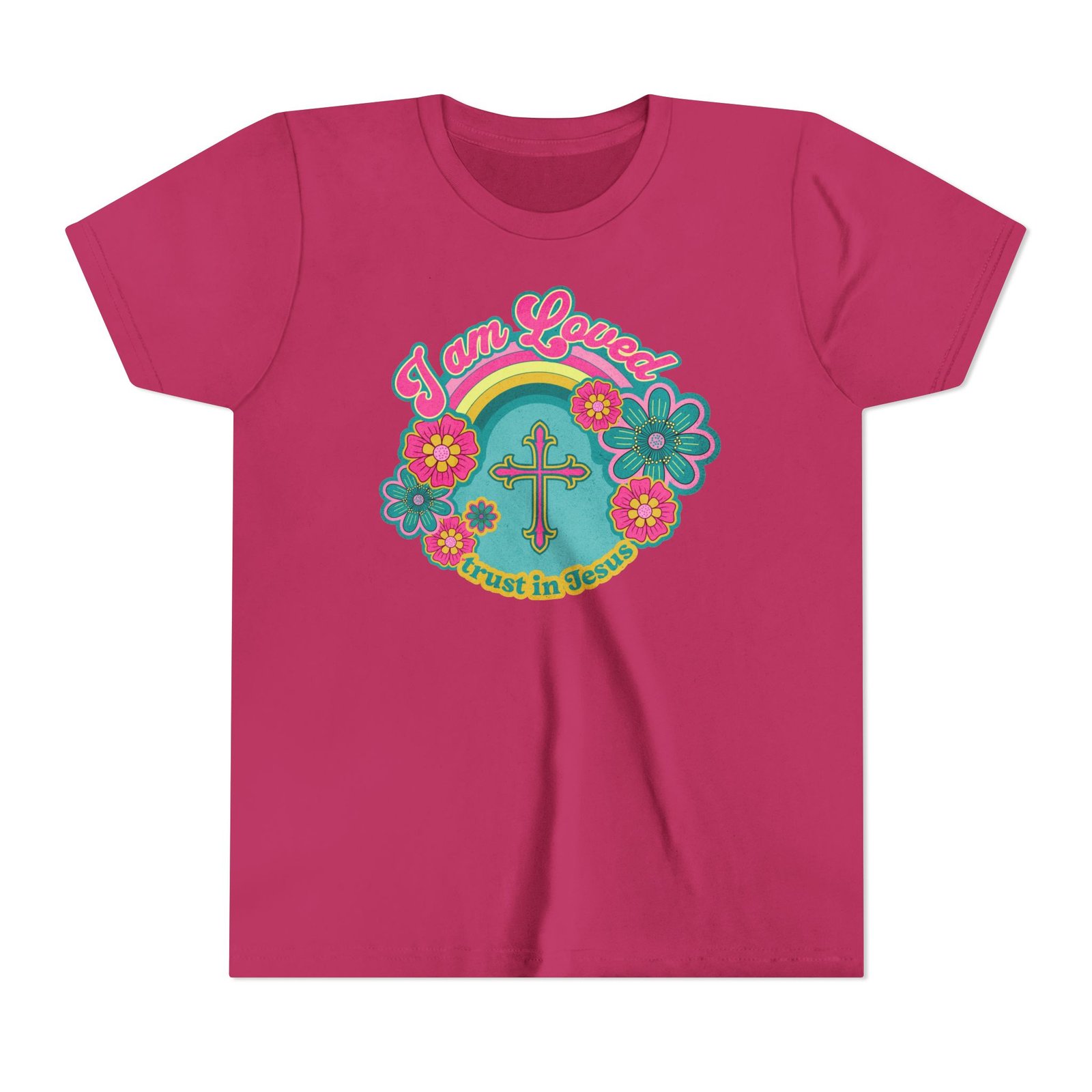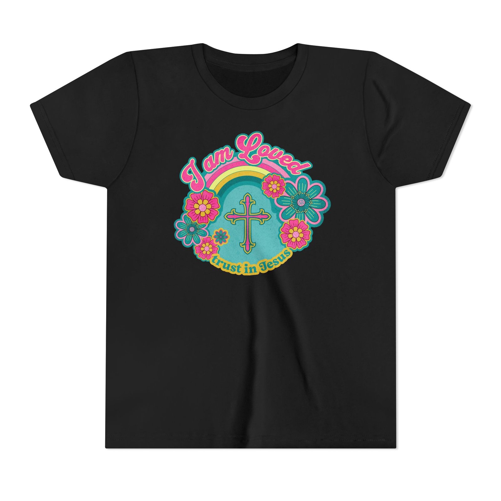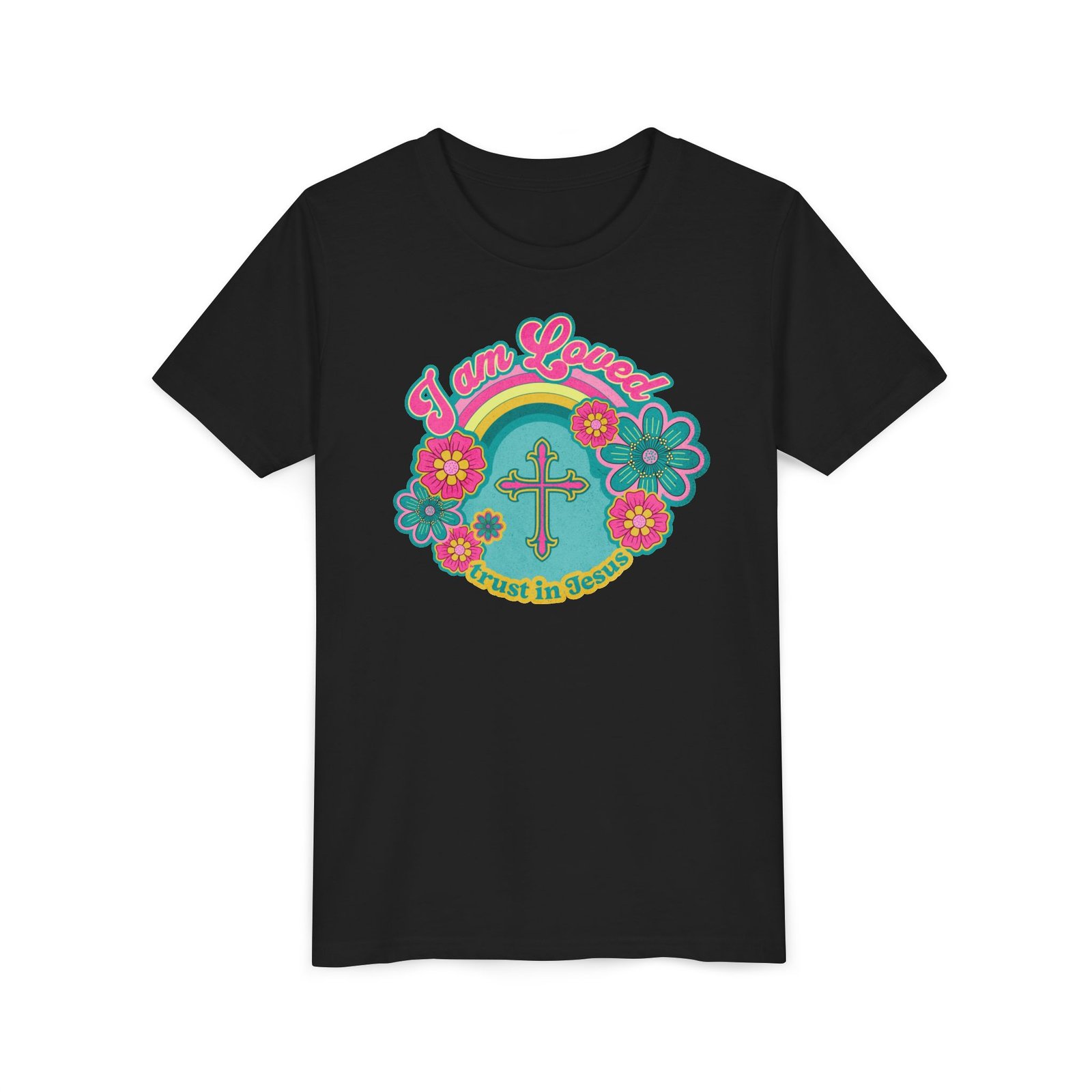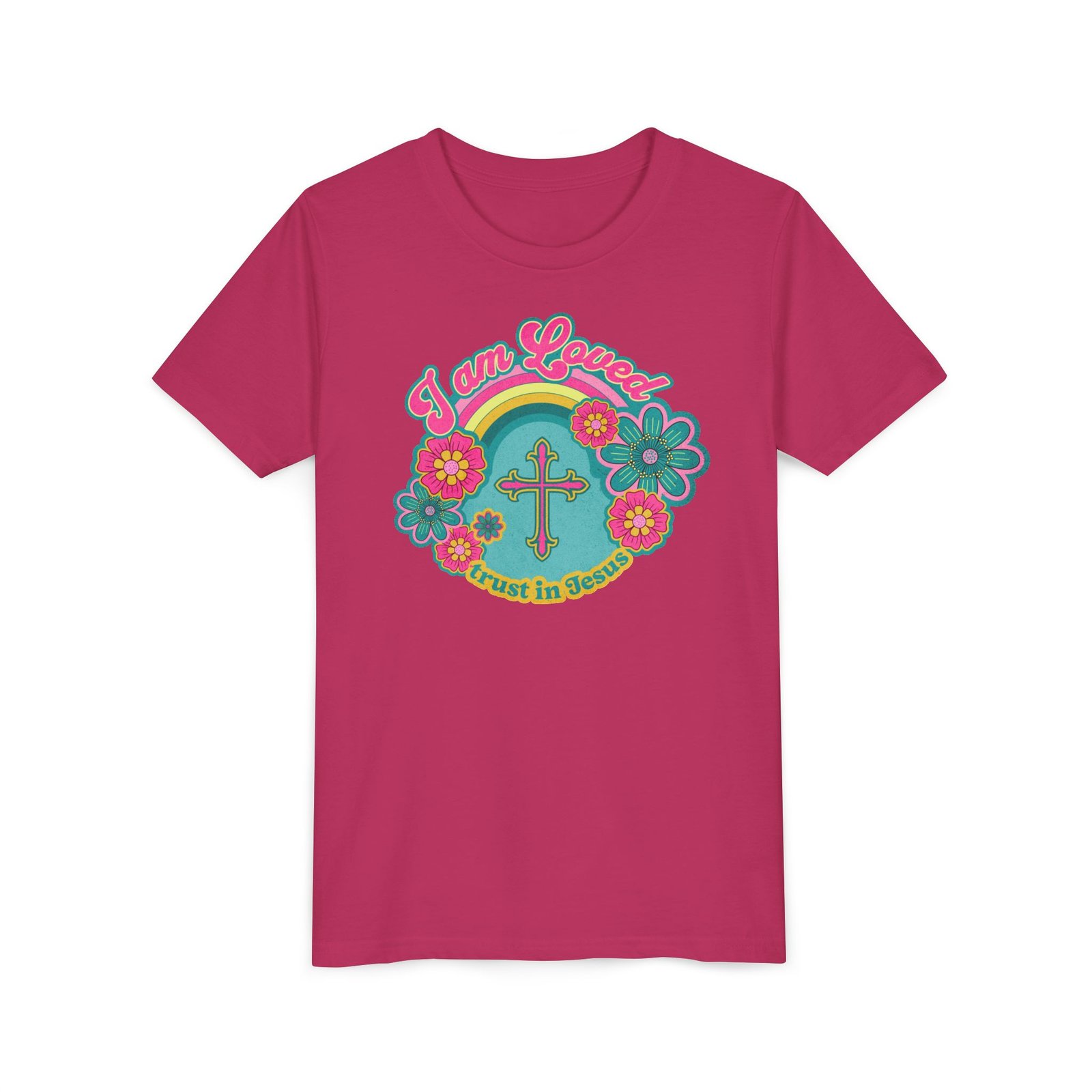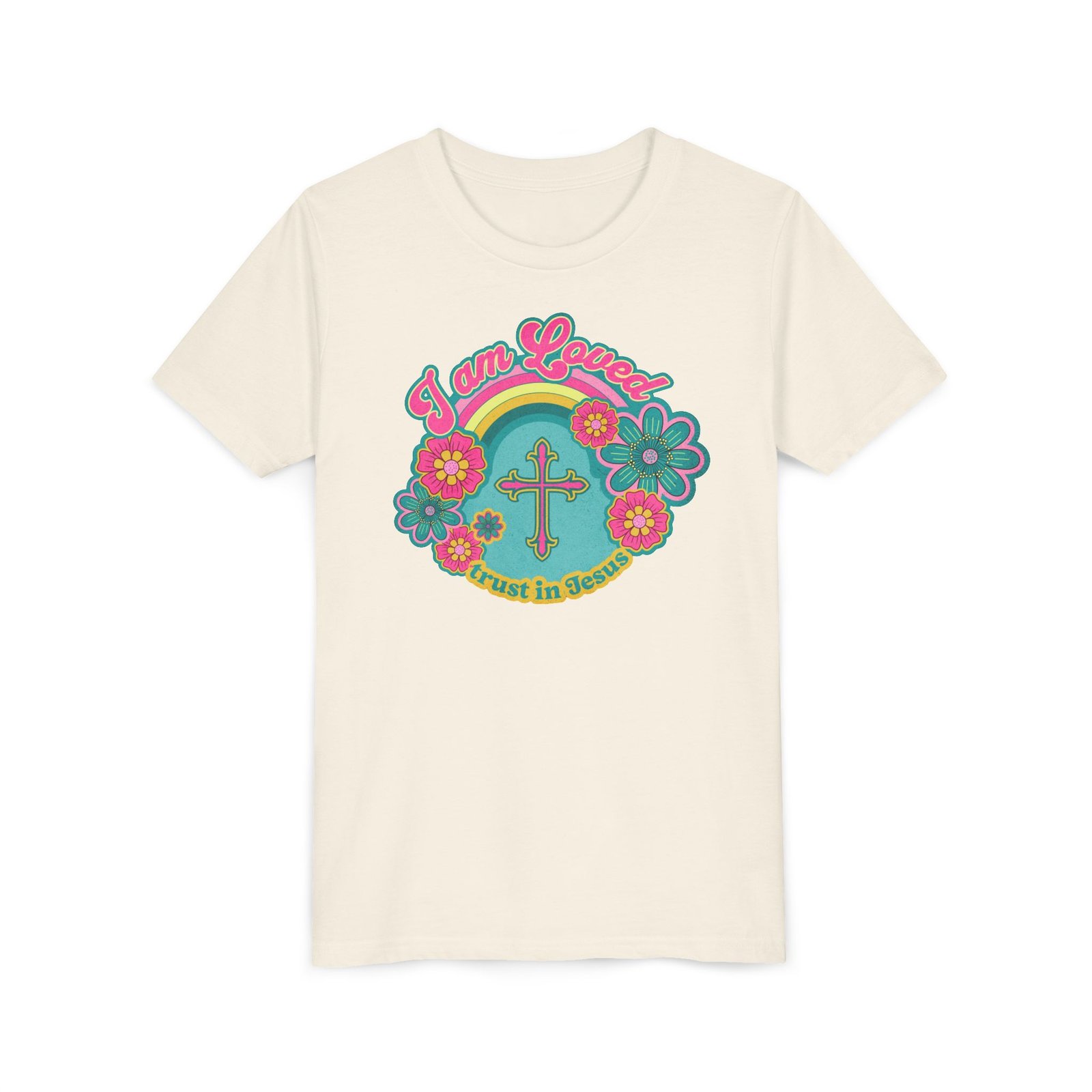 Christian Shirt for Kids , Boho Flowers shirt, I am loved Youth Tee, Religious Youth, homeschooler gift, youth girl rainbow t shirt